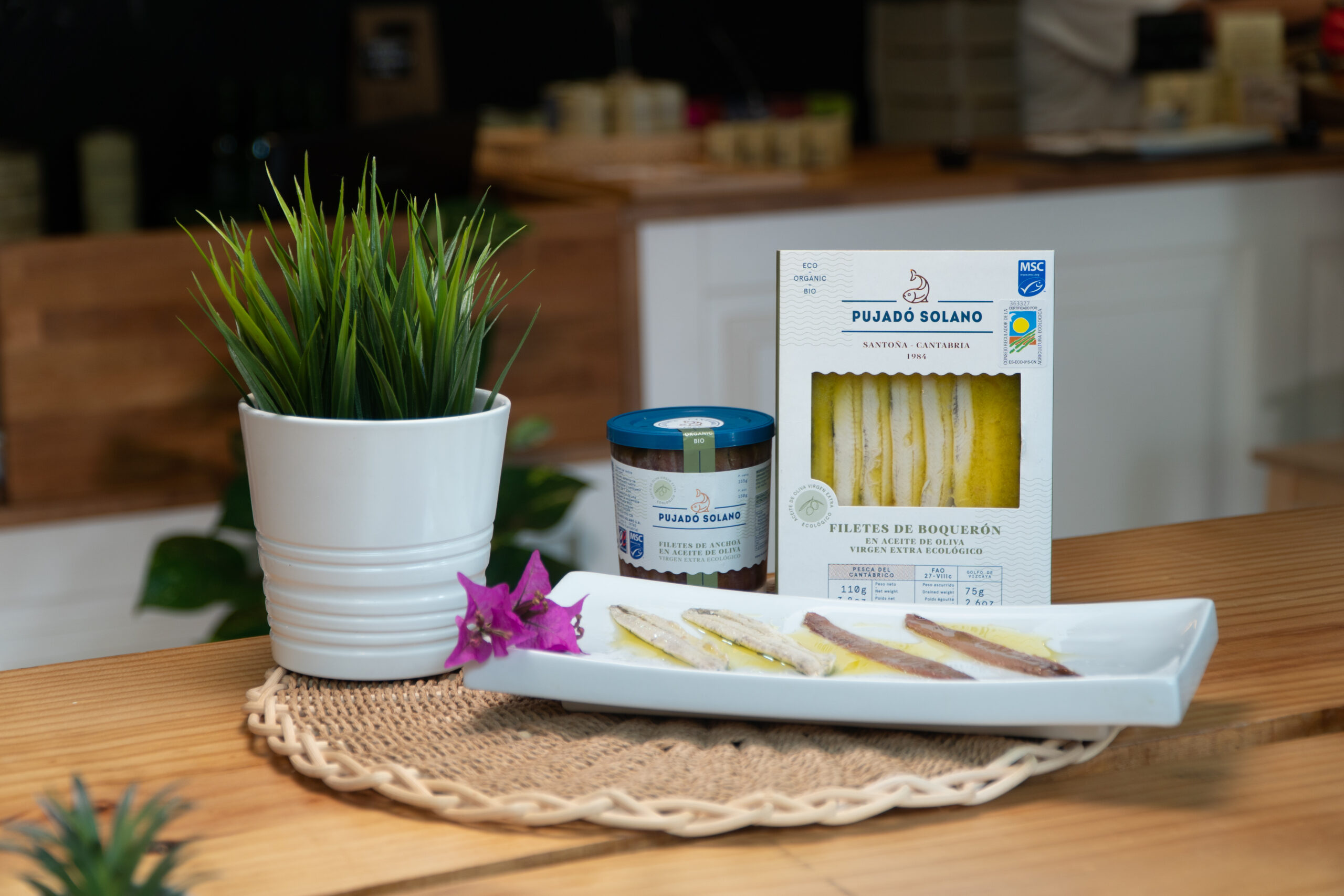 «Saborea la naturaleza en cada bocado.» Nuestros filetes de anchoa de Santoña, boquerón del Cantábrico y bonito del Norte, elaborados con aceite de oliva virgen extra ecológico, son un auténtico manjar para los amantes del mar, una alimentación saludable y un menor impacto en la naturaleza.
