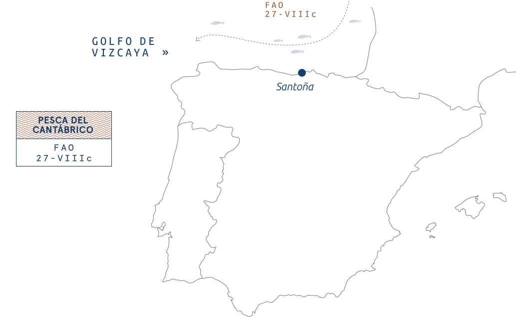 La pesca en el Cantábrico se inicia en los meses de primavera. Los barcos identifican los bancos de pesca o cardúmenes y, a continuación, proceden a rodearlos desde la superficie con redes de cerco, dejando caer al mar los paños de red. La embarcación gira en redondo describiendo un ángulo de 360 grados que abraza los peces localizados.