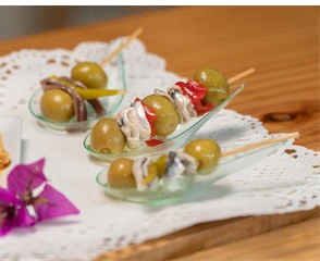 Ingredientes: boquerones (Engraulis encrasicolus), aceitunas, piparras, aceite de girasol y sal.