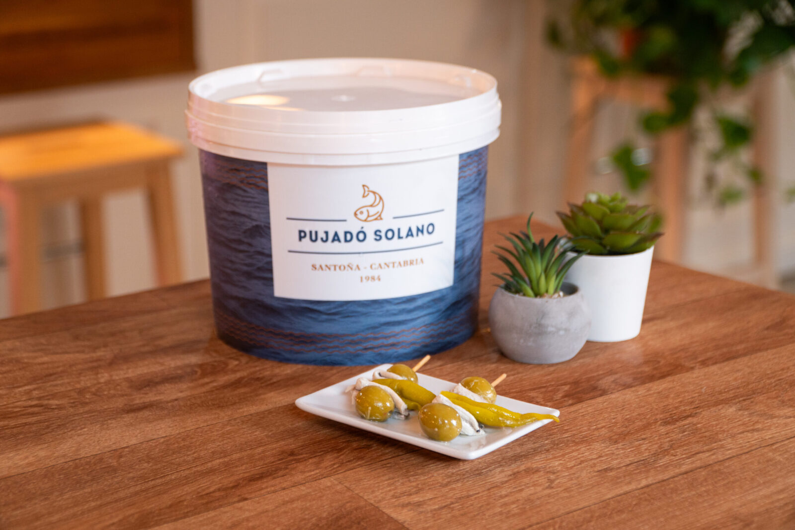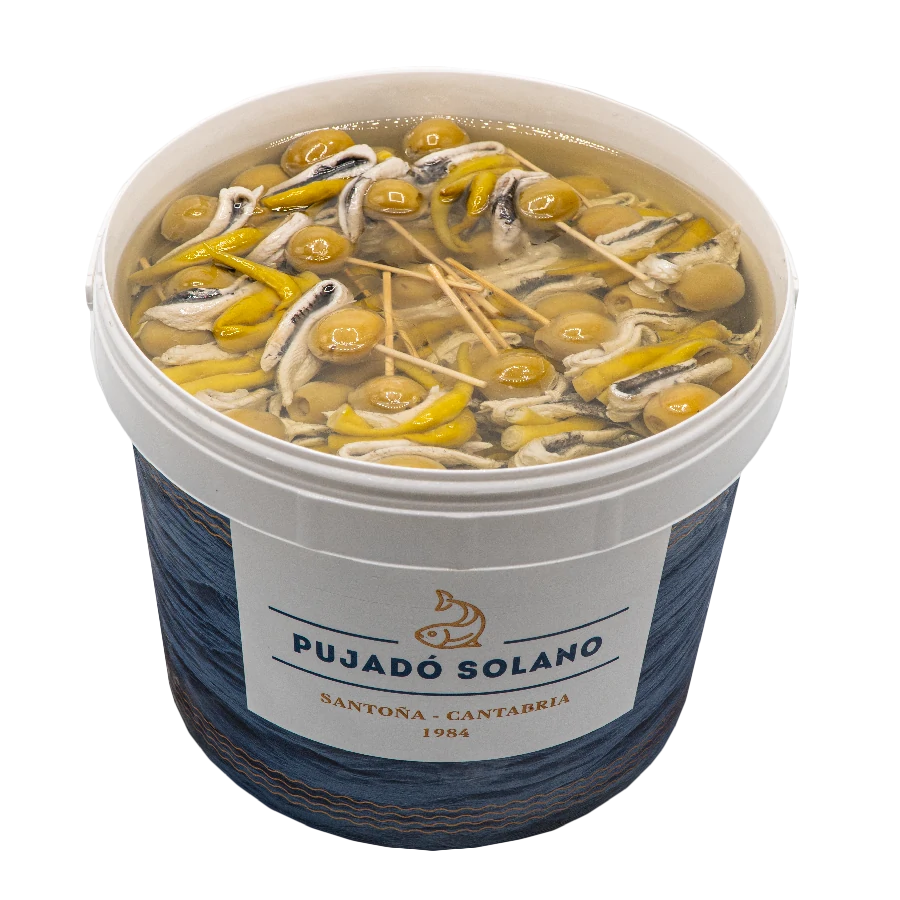 Cubo de gildas de boquerón del Cantábrico en aceite de girasol 100 piezas. ¡Perfecto para hacer un aperitivo a lo grande y compartir con todos!