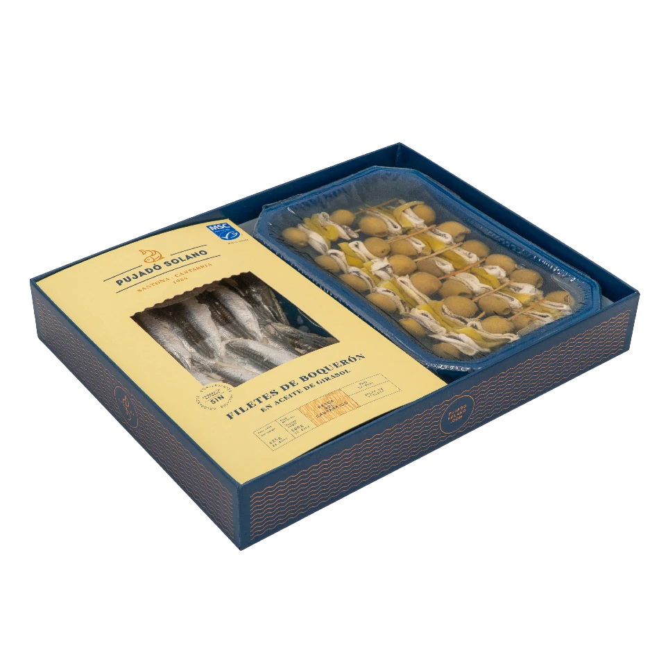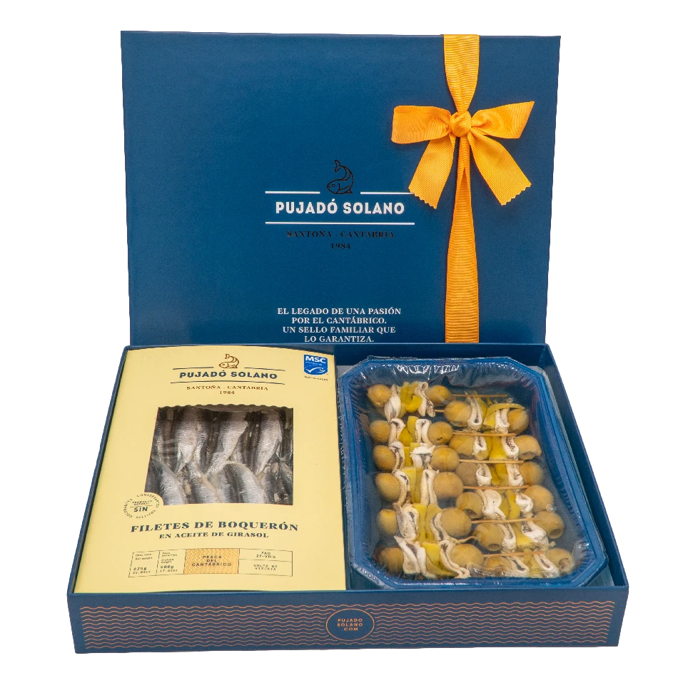 En nuestro 40 aniversario, te presentamos el regalo perfecto para quienes disfrutan de lo mejor del aperitivo. Nuestros boquerones, el producto estrella de la casa, protagonizan este exclusivo lote, que incluye una tarrina de boquerones frescos y otra de gildas de boquerones. Diseñado para los verdaderos amantes de este manjar del Cantábrico, es la opción ideal para un vermut inmejorable.